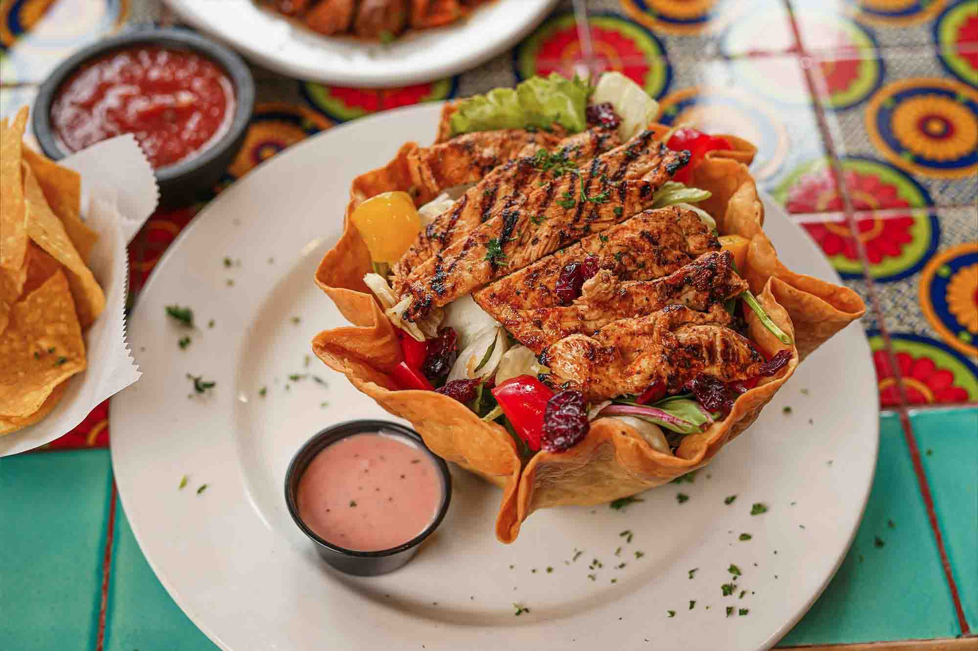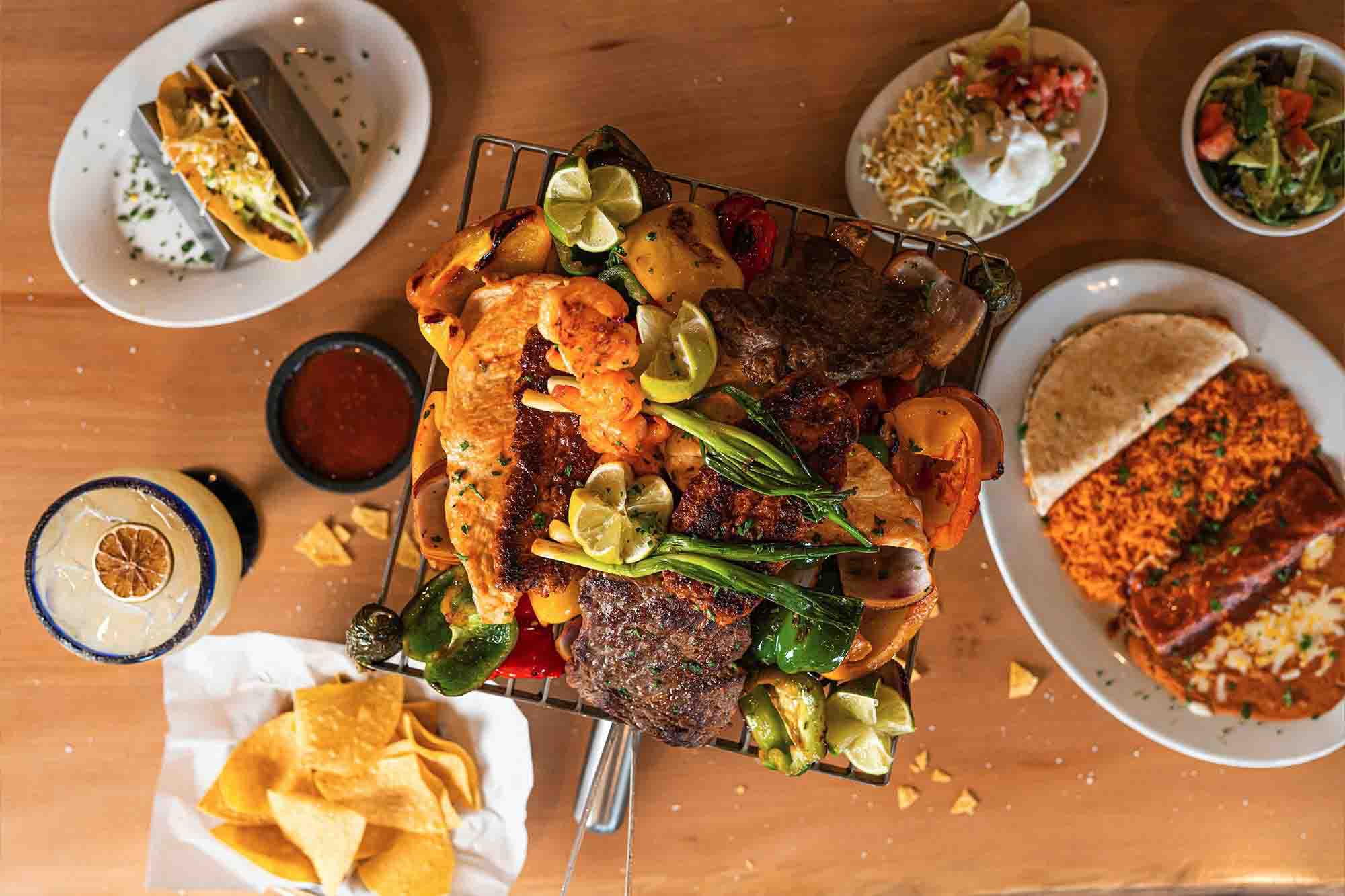 Find MoreA mix of crab, scallops, fish and vegetables. Topped with jumbo shrimp, salsa verde and white cheddar cheese. Served with Mexican rice, refried beans, and sour cream.